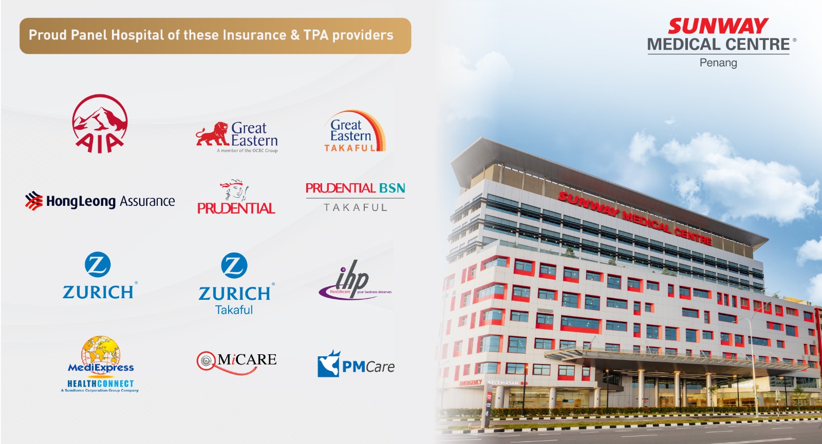 Berikut daftar perusahaan asuransi dan TPA yang diterima Sunway Medical Centre Penang: